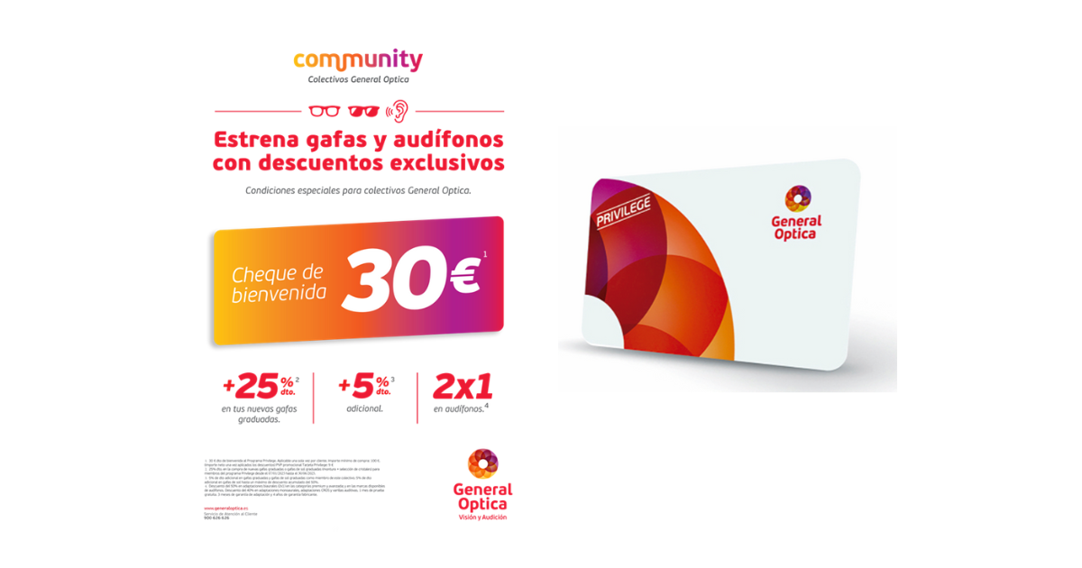 General óptica ( en todas sus tiendas) ofrece a las familias asociadas los siguientes descuentos: