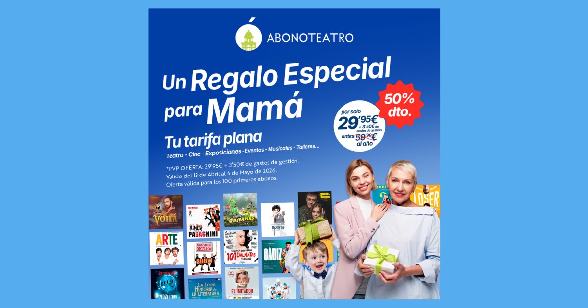 Abonoteatro-50% de descuento en la compra del 13 de abril al 4 de mayo.