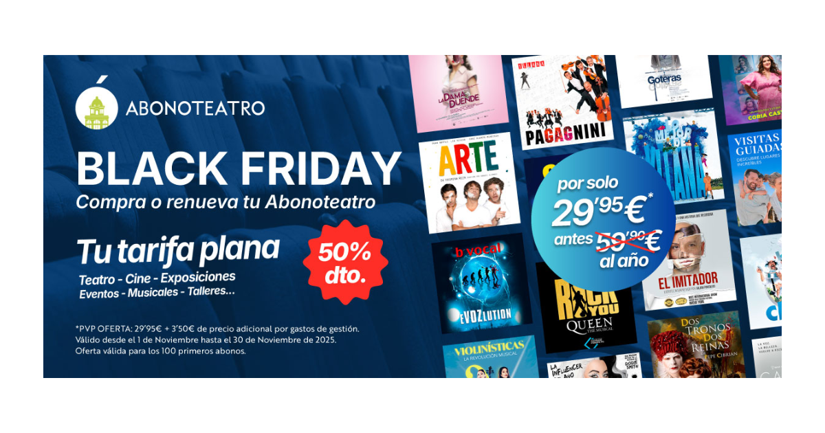 Abonoteatro-50% de descuento por el Black Friday del 1 al 30 de noviembre.