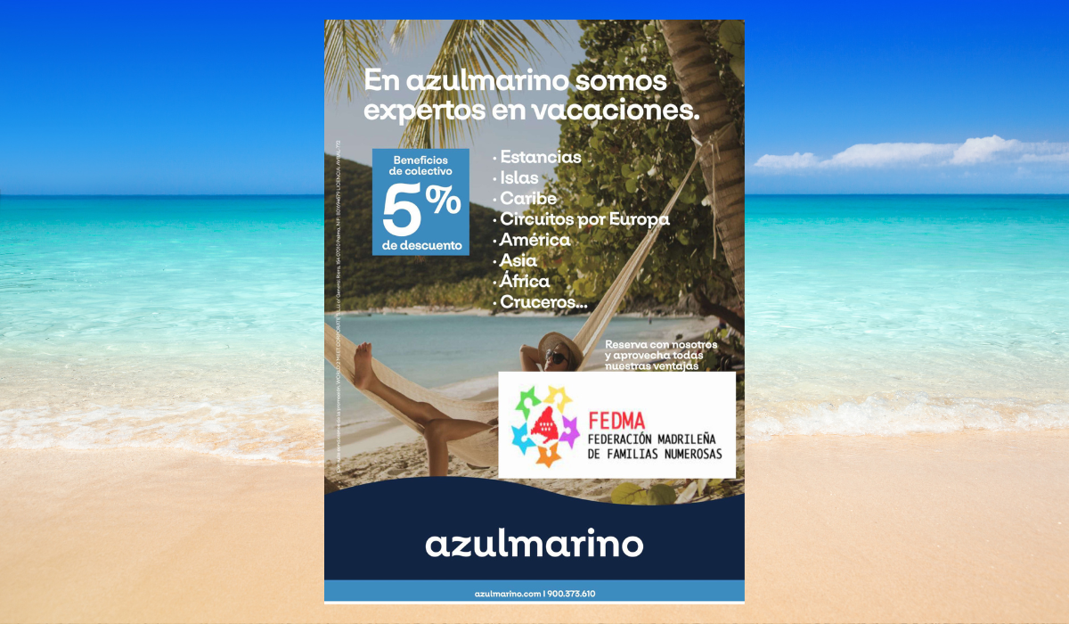 Azulmarino, quiere ofrecer unas condiciones ventajosas para todos los socios de la Federación Madrileña de Familias Numerosas que se compone de:
