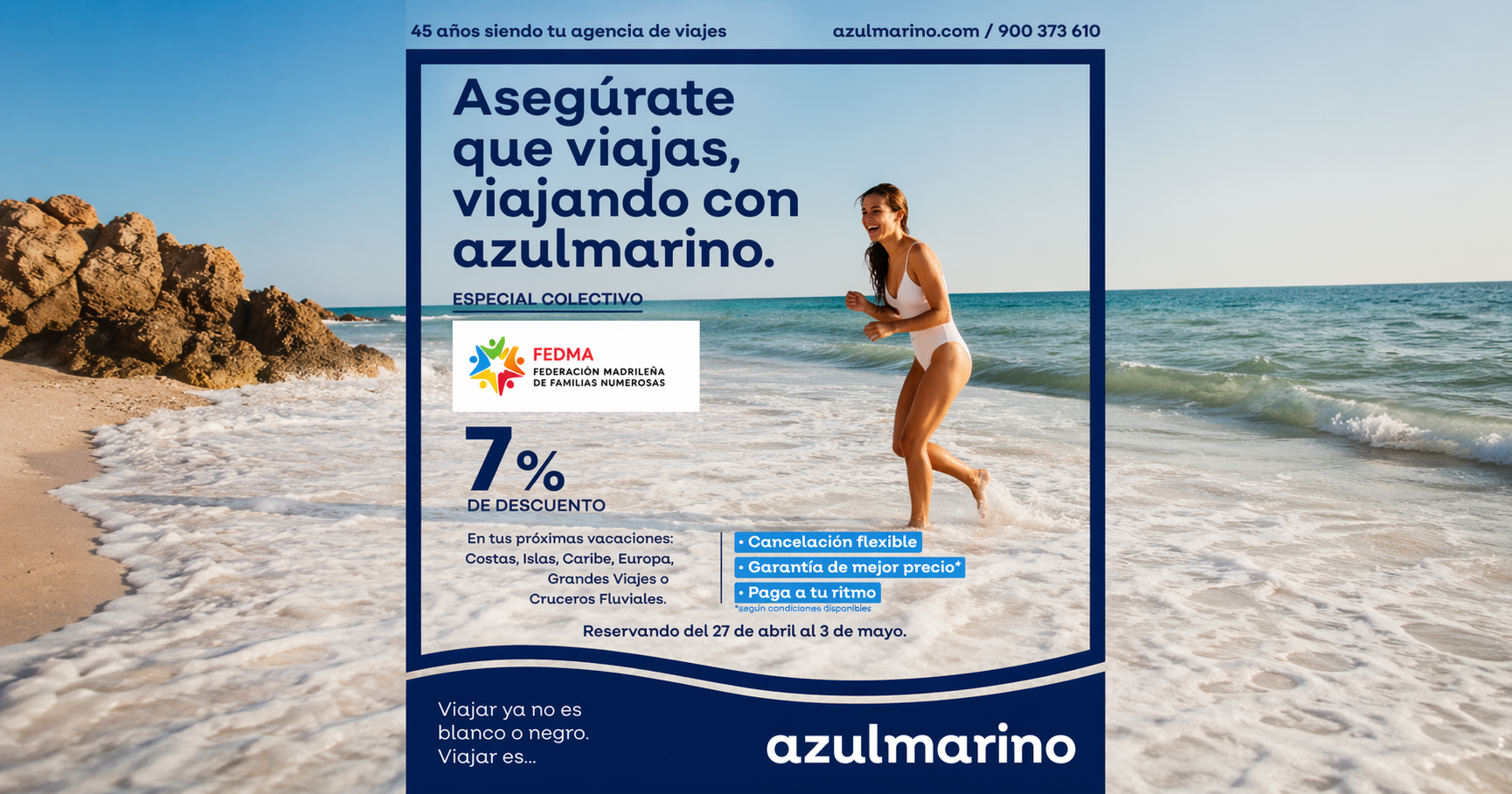Azulmarino New Travel-7% de descuento reservando del 27 de abril al 3 de mayo 2026
