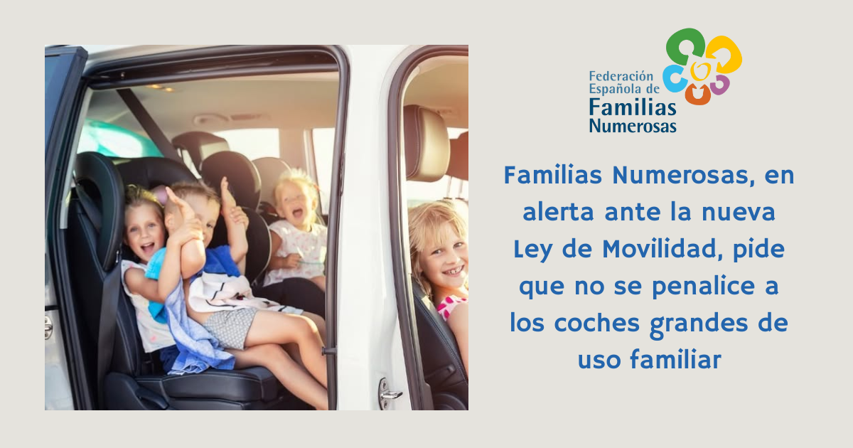 La Federación Española de Familias Numerosas (FEFN) pide al Gobierno que no penalice a las familias numerosas en la nueva Ley de Movilidad Sostenible, una norma que prevé limitar el transporte en función de las emisiones de C02, para reducir los niveles de contaminación, y que podría castigar a las familias con más hijos por usar coches más grandes y de mayor potencial fiscal.