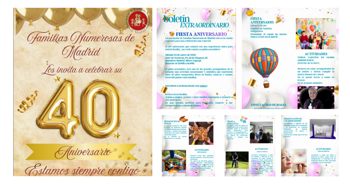 Invitación a la fiesta del 40 cumpleaños de la Asociación de Familias Numerosas de Madrid
