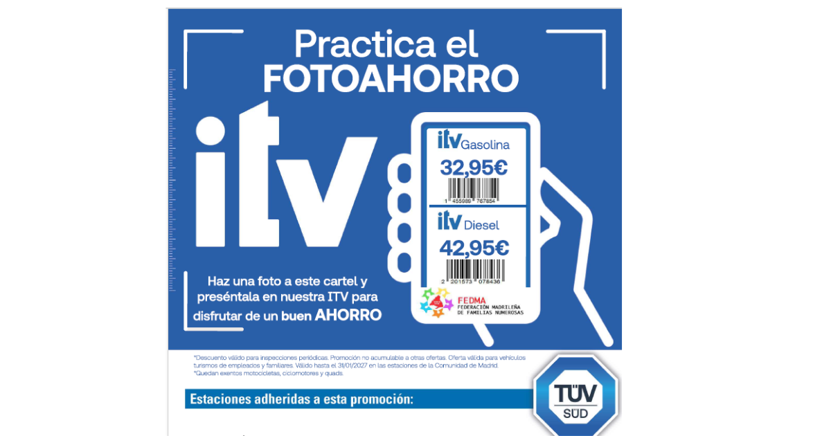 Descuento en ITV TÜV SÜD, para los asociados y familiares de FEDMA, en sus centros en la Comunidad de Madrid (excepto Itv Lozoyuela).