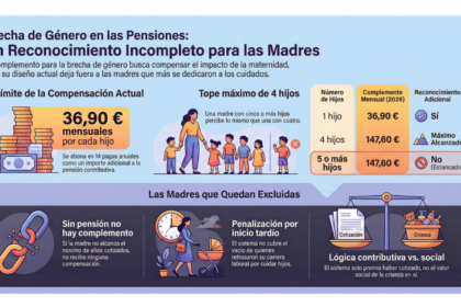Este diseño genera una paradoja de fondo: el sistema afirma querer reducir la brecha vinculada a la maternidad, pero su protección efectiva se concentra en quienes han permanecido dentro del mercado laboral. Quedan fuera o quedan insuficientemente cubiertas aquellas mujeres cuya dedicación al cuidado fue más intensa. En familias numerosas hay lagunas de cotización y bases más bajas, con un impacto acumulado que un complemento fijo difícilmente puede compensar.